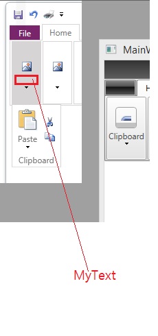 I want to code(or Xaml) sample to insert text('MyText') first RadRibbonGroup header;