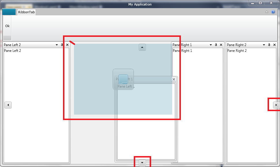 Compass, transparent overlays that shows where new panel will be docked and markers are translated to the right and bottom