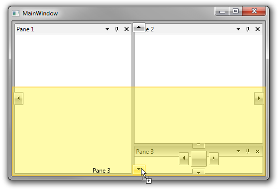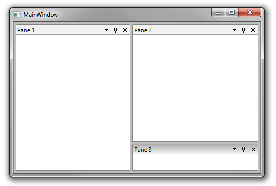 <tt:RadDocking DragDropMode="Deferred" HasDocumentHost="False"> <tt:RadSplitContainer> <tt:RadPaneGroup> <tt:RadPane Header="Pane 1" /> </tt:RadPaneGroup> </tt:RadSplitContainer> <tt:RadSplitContainer Orientation="Vertical"> <tt:RadPaneGroup> <tt:RadPane Header="Pane 2" /> </tt:RadPaneGroup> <tt:RadPaneGroup tt:ProportionalStackPanel.RelativeSize="100,25"> <tt:RadPane Header="Pane 3" /> </tt:RadPaneGroup>