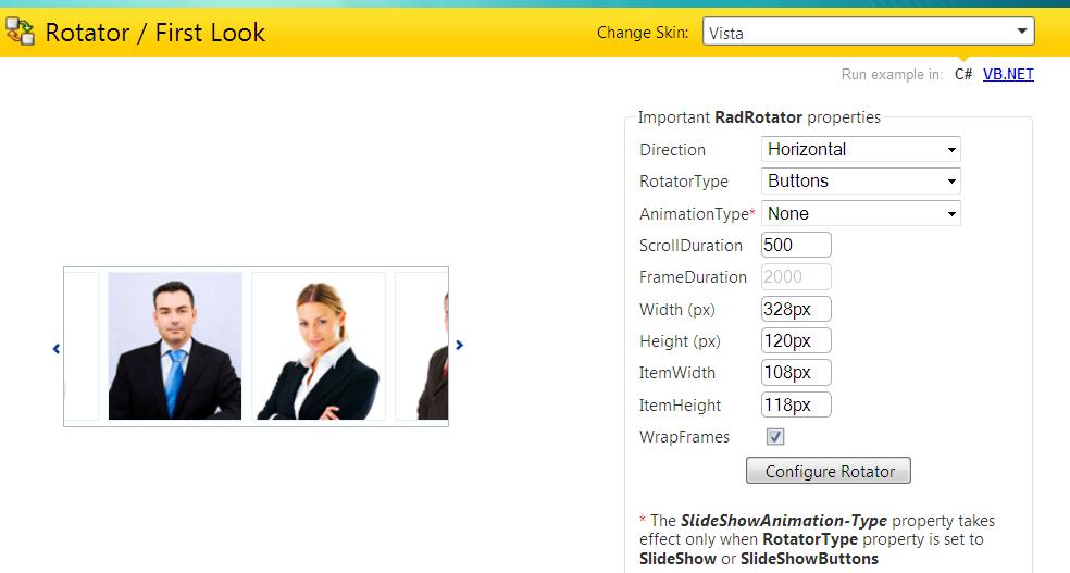 <telerik:RadRotator ID="radRotator1" RotatorType="buttons" runat="server" Width="547px"