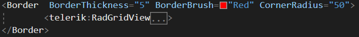 Hello, I'm trying to set rounded corners for my RadGridView but can't figure out how to do it, I tried putting it in a border with CornerRadius but it did nothing