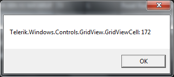 this.radGridView.AddHandler(GridViewCell.MouseLeftButtonDownEvent, new MouseButtonEventHandler(MouseDownOnCell), true);private void MouseDownOnCell(object sender, MouseButtonEventArgs e){ try { object cellValue = ((UIElement)e.OriginalSource).ParentOfType<GridViewCell>().Value; MessageBox.Show("Click on : " + cellValue.ToString()); } catch (Exception ex) { MessageBox.Show(ex.Message); return; }}