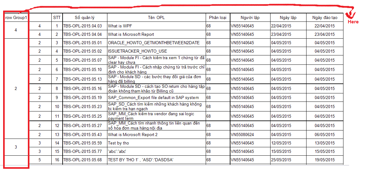 I have a report must use rows group like image attach. I want move row group in last column. Who know how to do this please help me.