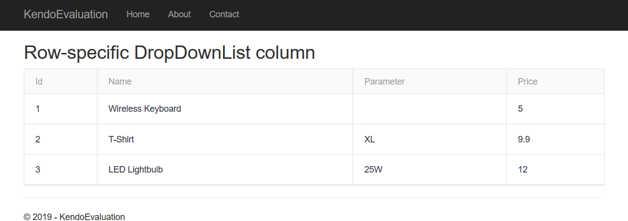 When the user changes the option in a DropDownList, data is send to the server, and an updated row is returned back to the client (for example, with a different price).