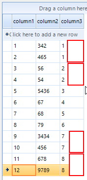 Dim CellValue As StringDim RowI As GridViewRowInfoDim RowII As GridViewRowInfoFor i = 0 To grd.Rows.Count - 1 RowI = grd.Rows(i) CellValue = grd.Rows(i).Cells("colID1").Value For ii = i + 1 To grd.Rows.Count - 1 RowII = grd.Rows(ii) If CellValue = RowII.Cells("colID1").Value Then 'RowI Change BackColor 'RowII Change BackColor End If NextNext