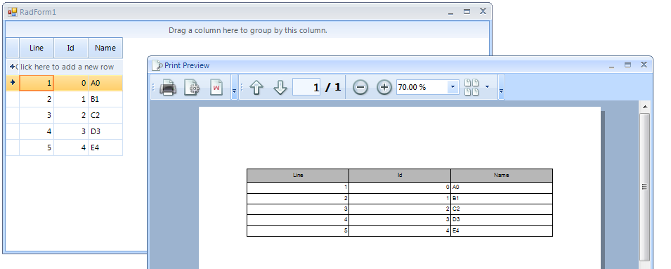 private void radGridView1_PrintCellFormatting(object sender, PrintCellFormattingEventArgs e){ if (e.Column.Name == "Line" && string.IsNullOrEmpty(e.PrintCell.Text)) { e.PrintCell.Text = (e.Row.Index + 1).ToString(); }}I hope this information helps. If you have any additional questions, please let me know.