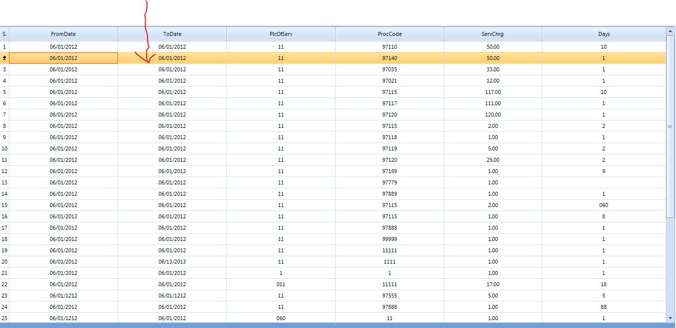 now see the pic 3 : if you still move the selected row down, its moving down but the scroll bar is not moving parallel and the selected row is not visible to the user