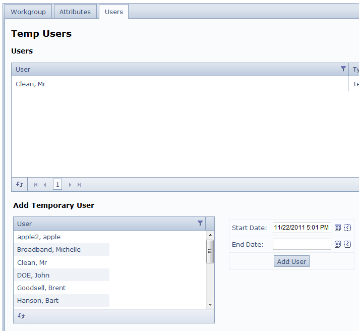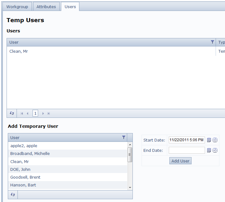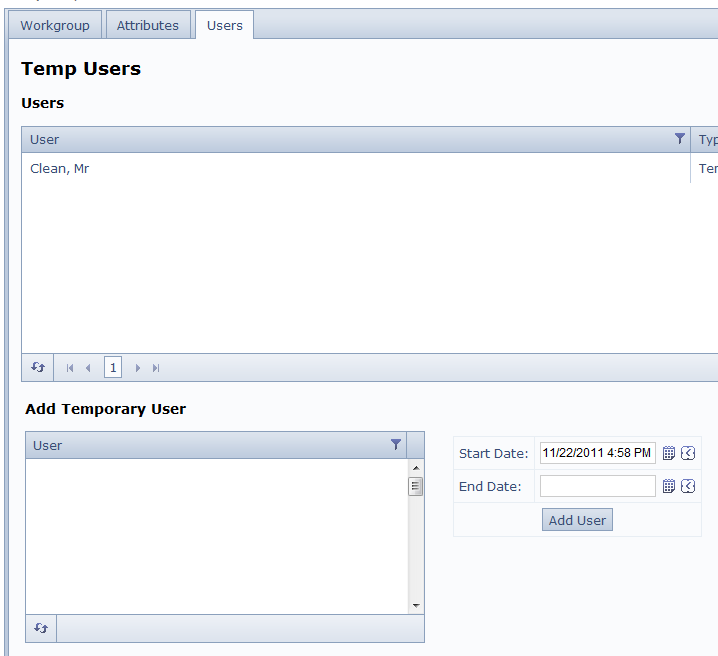 <div id="user_collection_to_add_from"> <h3>Add Temporary User</h3> @(Html.Telerik().Grid<GCSAdminPoco.UserInfo>() .Name("UsersToAddToWorkgroupGrid") //.Editable(editing => editing.Mode(GridEditMode.PopUp)) .DataKeys(dataKeys => { dataKeys.Add(k => k.ID); }) .DataBinding(dataBinding => dataBinding .Ajax() .Select("SelectAllUsers", "User") ) .Columns(columns => { columns.Bound(c => c.ID).Hidden(true); columns.Bound(c => c.DisplayName).Title("User"); }) .ClientEvents(events => events.OnRowSelect("onRowSelectedForUser")) //.ClientEvents(events => events.OnDelete("onDeleteForAttributeCollection")) //.ClientEvents(events => events.OnDataBound("onDataBoundForAttributeRefresh")) .Selectable() .Scrollable(scrolling => scrolling.Height("155px")) .Filterable(filtering => filtering.Enabled(true)) .Sortable() //.Pageable(pager => pager.PageSize(10)) ) </div>See attached screen shots.