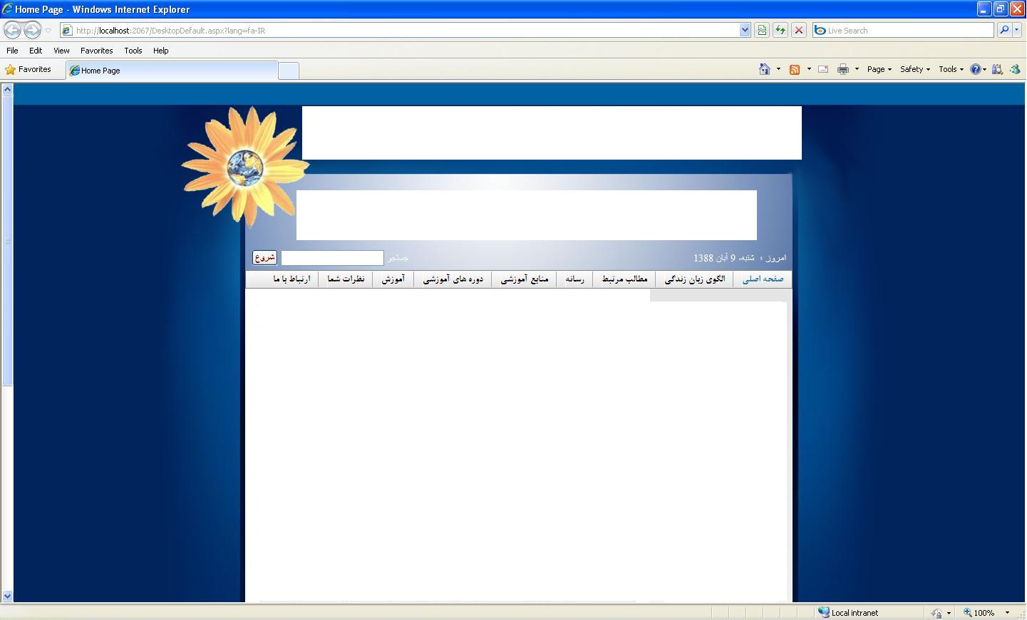 This issue is caused by the iframe overlay that is rendered under the submenus in order to overlay flash elements for instance. The triggered IE bug is weird and currently we couldn't find a way to fix it directly. Until we can, one workaround is to switch off the menu overlay if you don't use it, another workaround is to move the direction (dir="rtl") attribute from the body tag to the form tag.