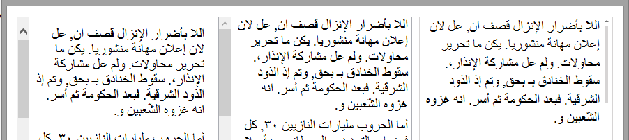 I'm having problems loading an Arabic document into a RadRichTextBox -- the crux of the problem is that if you set the FlowDirection on the RadRichTextBox it puts the scroll bar on the left (where it should be) but it reverses the text. If one sets the FlowDirection to LeftToRight the text is correctly displayed (RTL and right aligned) but the scrollbar is on the right.