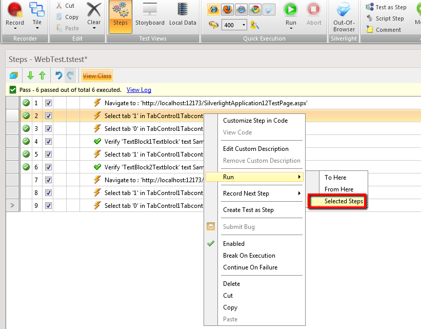 Is there an option I could set in code for a test or test steps without having to change each individual Test Step within a Test to RunAgainst AllBrowsers except selected Browser(s) for test steps or for a test?