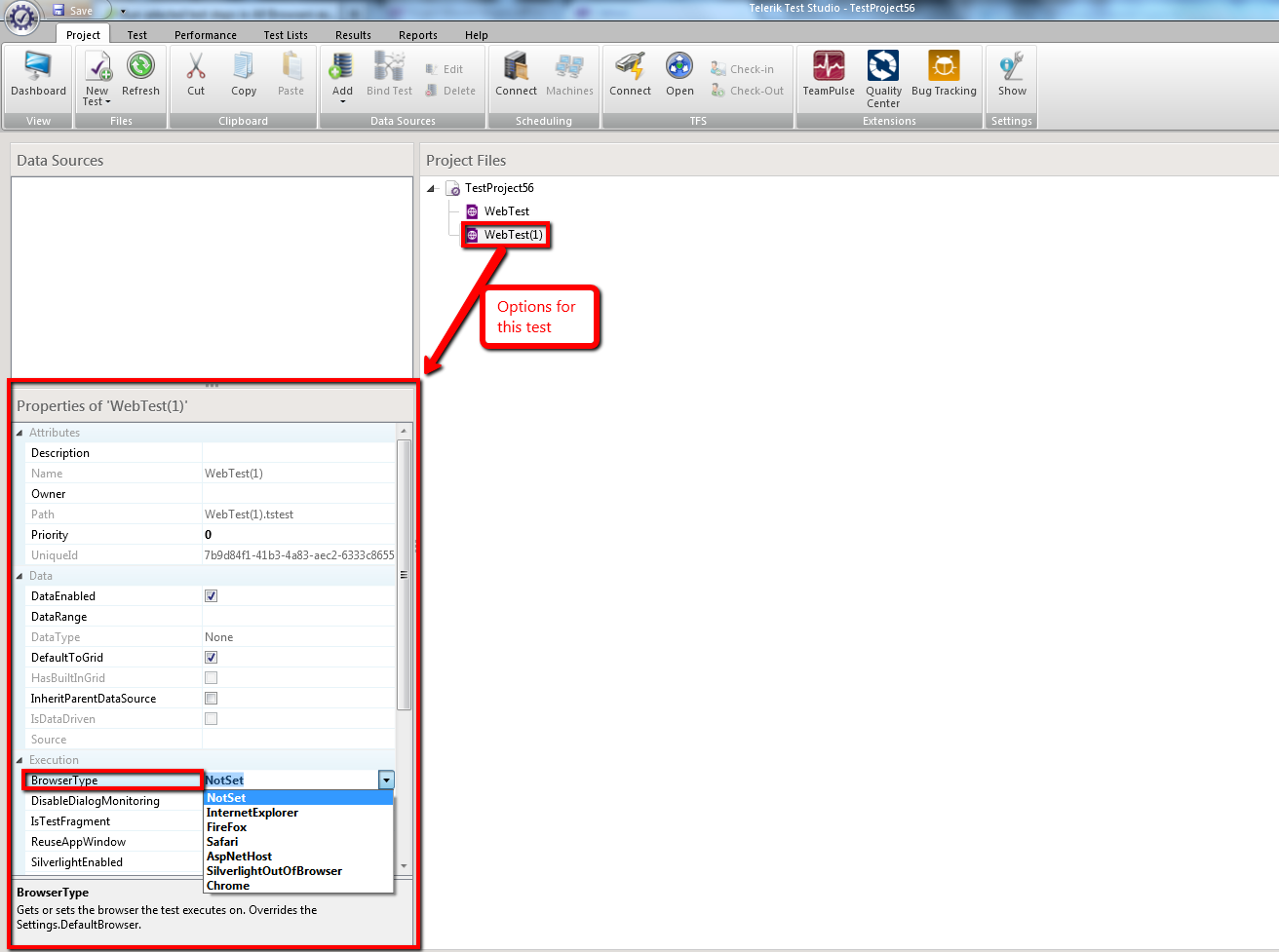 The RunAgainst: AllBrowsers or {IE|Firefox|Chrome|Safari|ASPNetHost|SilverlighOutOfBrowser] option works for one or all