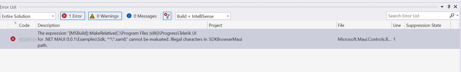 I am following the online documentation of TelerikUI to run the example SDK project with VS 2022. However, the build is throwing an error. Can someone please help with how to resolve this issue?
