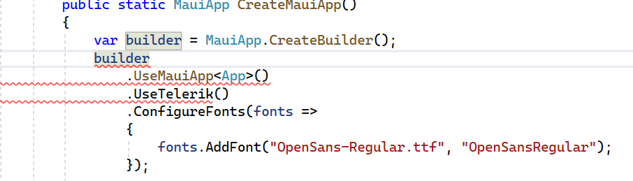 That error code is unrelated to Telerik controls. the missing class is MauiAppBuilder, which comes from Microsoft.