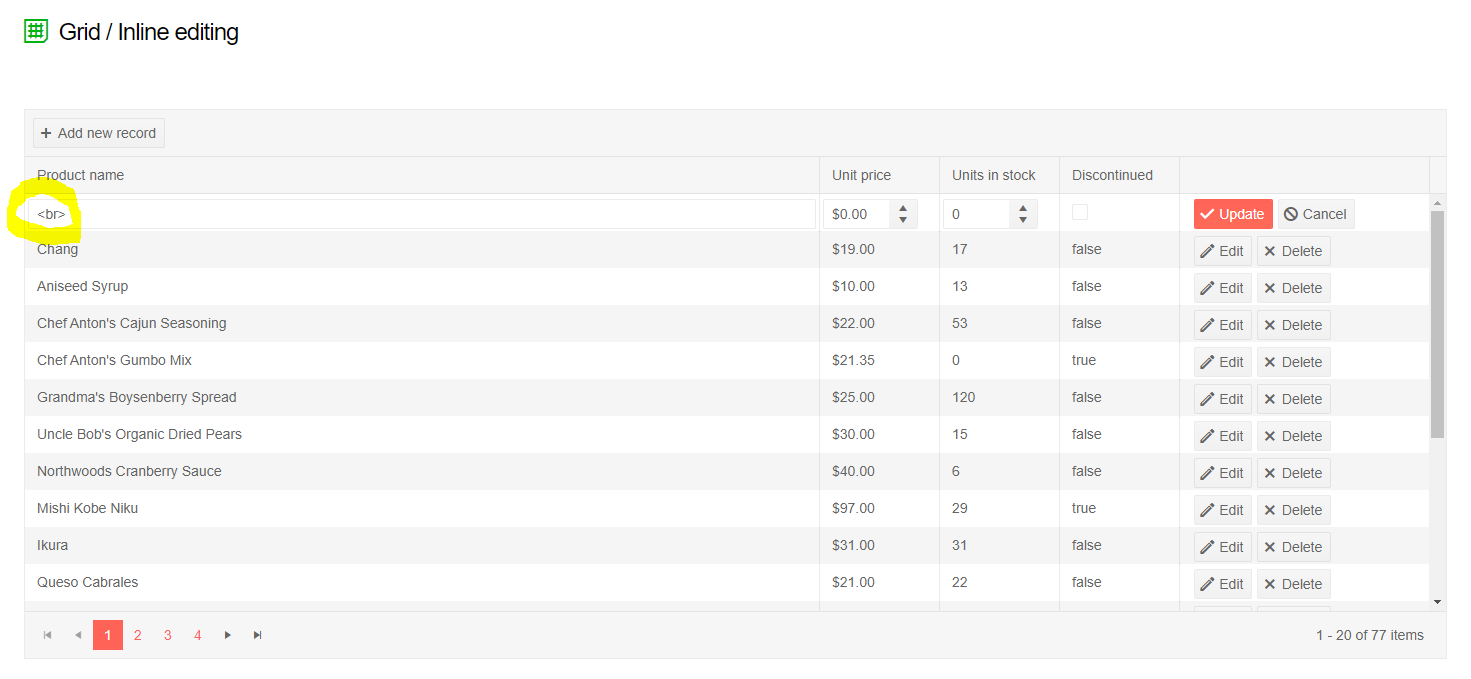 I'm making the Grid/Inline editing list using Kendo UI MVC referring this: https://demos.telerik.com/aspnet-mvc/grid/editing-inline