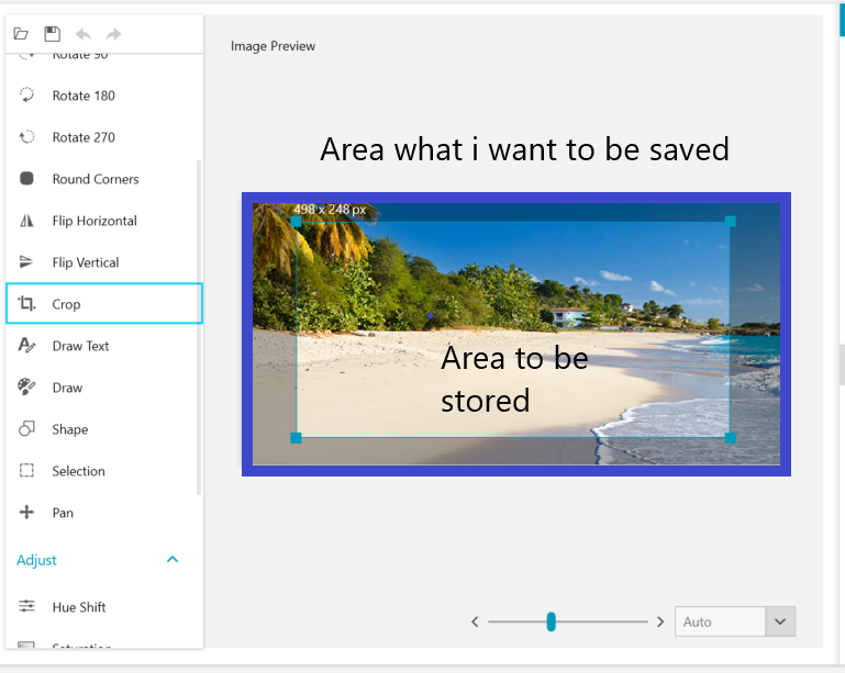 To achieve your requirement you can create a custom SaveImageCommand and override its ExecuteOverride method. There you can check if the executing tool is CropTool. In this case, avoid committing the tool. You can assign the custom command to the RadImageEditorUIcontrol via its SaveCommand property. I've attached a small example showing this. I hope it helps.