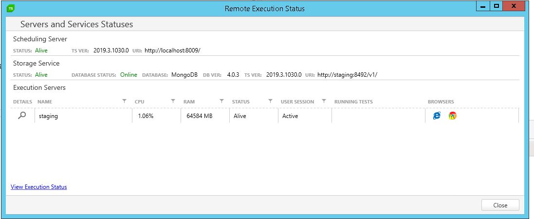 2) Everything shows as being alive/online in the execution status view.