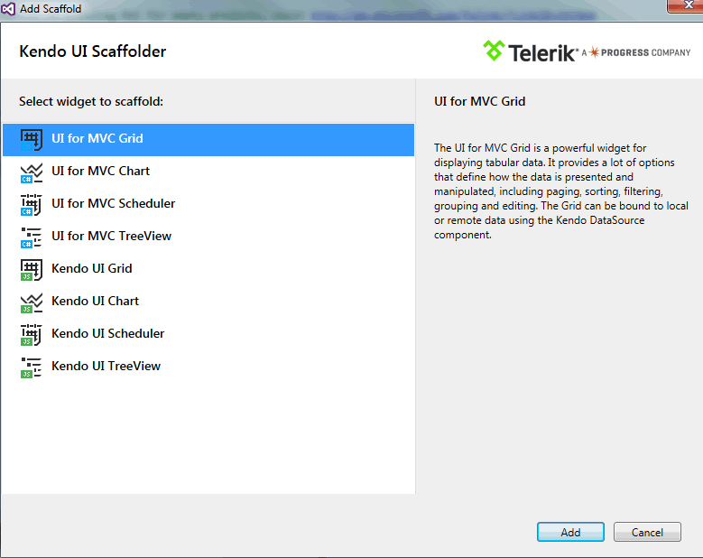 However, when clicking the add controller context menu, I now get the Telerik Add Scaffold dialog box, which does not have an option for a plain controller (screen shot attached).