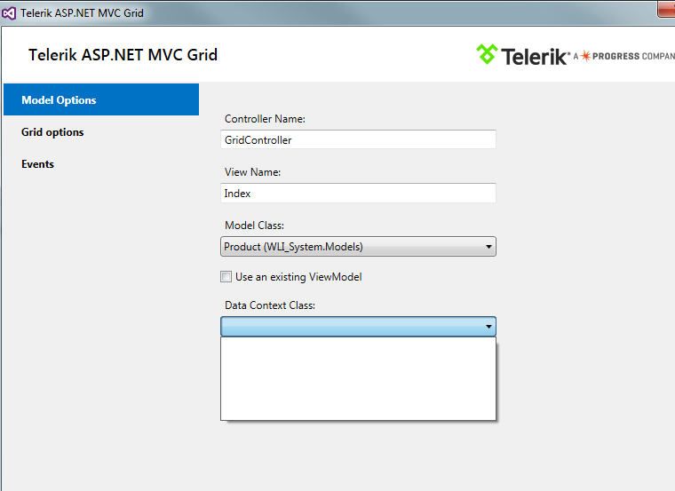When I choose the UI for MVC Grid option, I'm unable to choose a dataContext class, even though one exists (using EntityFramework Core).