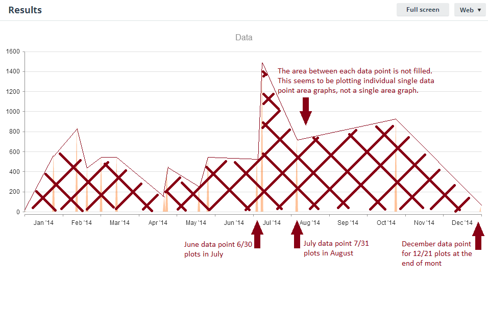 I also have to create an area chart the same way, similar to a scatterLine with shading below the line. I ran across this post from a few years ago, is it possible to roll this into an upcoming release? This would be great, I'm sure others would want to see a daily chart with a weekly/monthly/yearly axis.