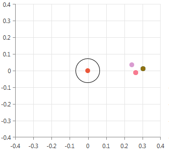 I need to create a scatter plot that looks something like the image I've attached which features a combination of scatter points and rings of defined sizes.