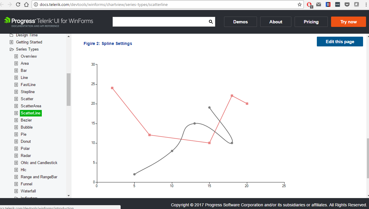 Hello. I'm trying to style a series spline to have a thin borderwidth to set it apart from the other splines on the chartview, but no matter what value I set the BorderWidth property to, the spline is the same thickness. Intellisense for BorderWidth mentions that BorderBoxStyle.FourBorders must be used, and the series is normally in SingleBorder, but setting it to FourBorders also didn't help. I also tried to set the BorderDashStyle to dashes, just to see if other property changes would be respected, but the line is still solid. The BorderColor and Spline properties appear to be respected. Any ideas what I'm doing wrong?