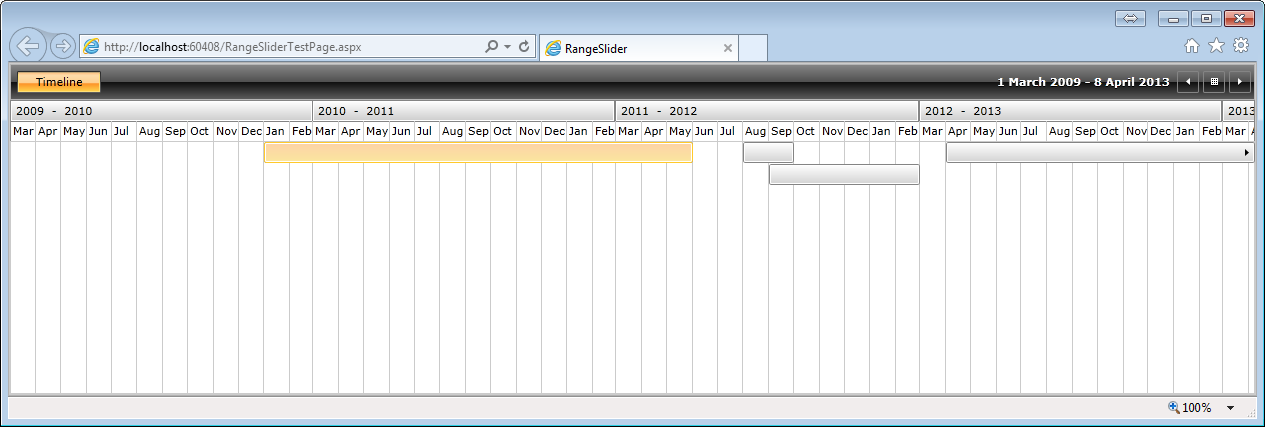 3. I've been playing around with the VisibleDays property of the TimelineDefinition to see if I can work around any of my issues but when I set VisibleDays greater than around 1540, an exception is generated. I know that this is a huge number of days but when you're only concerned with months, it's only around 50 columns.
