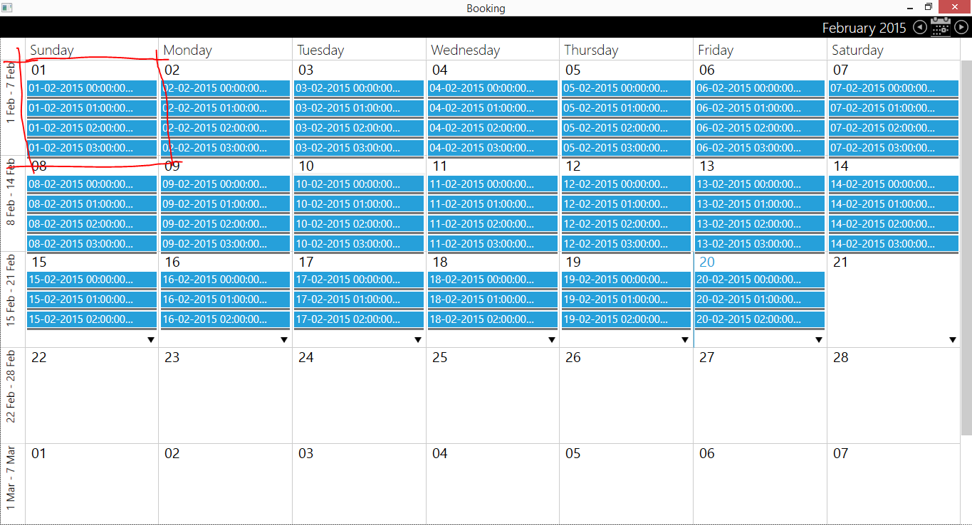 In order to reduce the row height, you will need to customize the GroupHeaderStyleSelector of the ScheduleView and more specifically the MonthViewBottomLevelWeekGroupStyle. Please take a look at the MonthViewInitiallyExpanded example in our XAML SDK Repository which demonstrates how you can customize the MonthViewBottomLevelWeekGroupStyle - in your case you will need to set MinHeight property ( its default value is 85), here is a quick example: