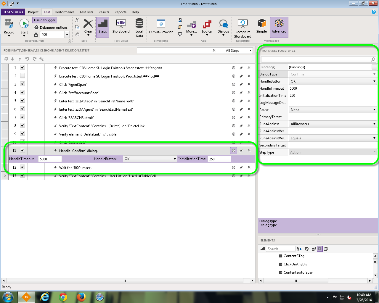 3. It is a non coded step using test studios handle dialog functionality. Attached is the step in the test and its properties.