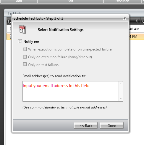 - On step 3 of 3 when scheduling a test, you are asked if you want to be notified (see screenshot)