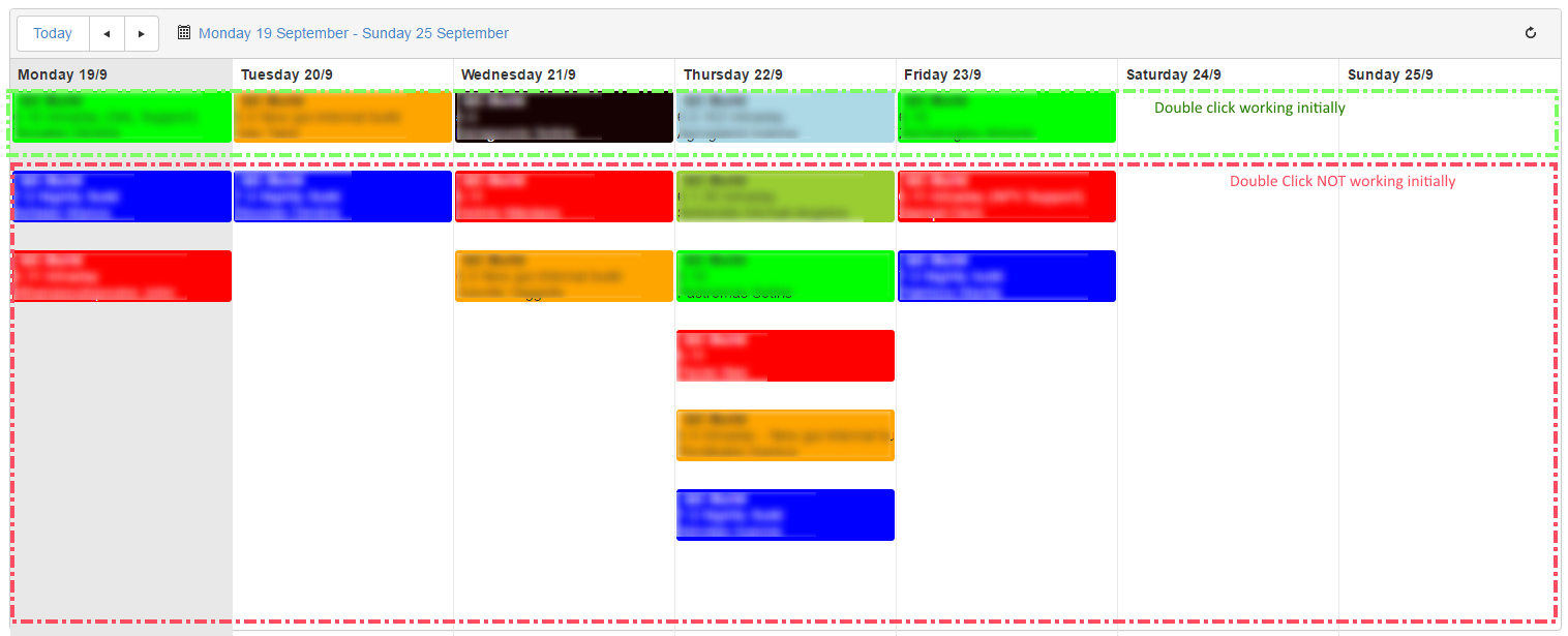 When I double click on an existing schedule item, the edit form pops up always. The problem is when I want to add a new item, by double clicking on the "white" area. This is not always working. After trying 2 or 3 times (maybe doing an edit pop up in between), the add new item popup starts to work. After poping out once, it works always, until a page reloads. The issue is more common in firefox, but it does happen in chrome as well.