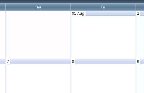 That didn't work. What that did was set the color to white on the days of the week header (where it says Sun, Mon, Tue, etc.). I need the header strip on each day of the month where it shows the days number (ie, 01 Sep, 2, 3, etc.)
