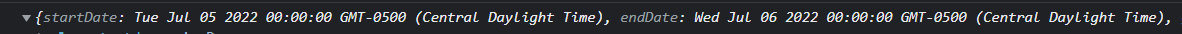 However, in all cases, the slotData has a startDate of Tue Jul 05, and that is what I'm matching on