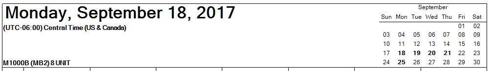 I'm also trying to change the calendar title of my Scheduler Print. At the moment, this title is similar to the one in Quentins attachment. However, I would like to get rid of the date and timezone and would like to have the text at the bottom (M1000B ...) at the position of the date (with the same font). Would it be possible to provide me an code snippet on how to achieve this?