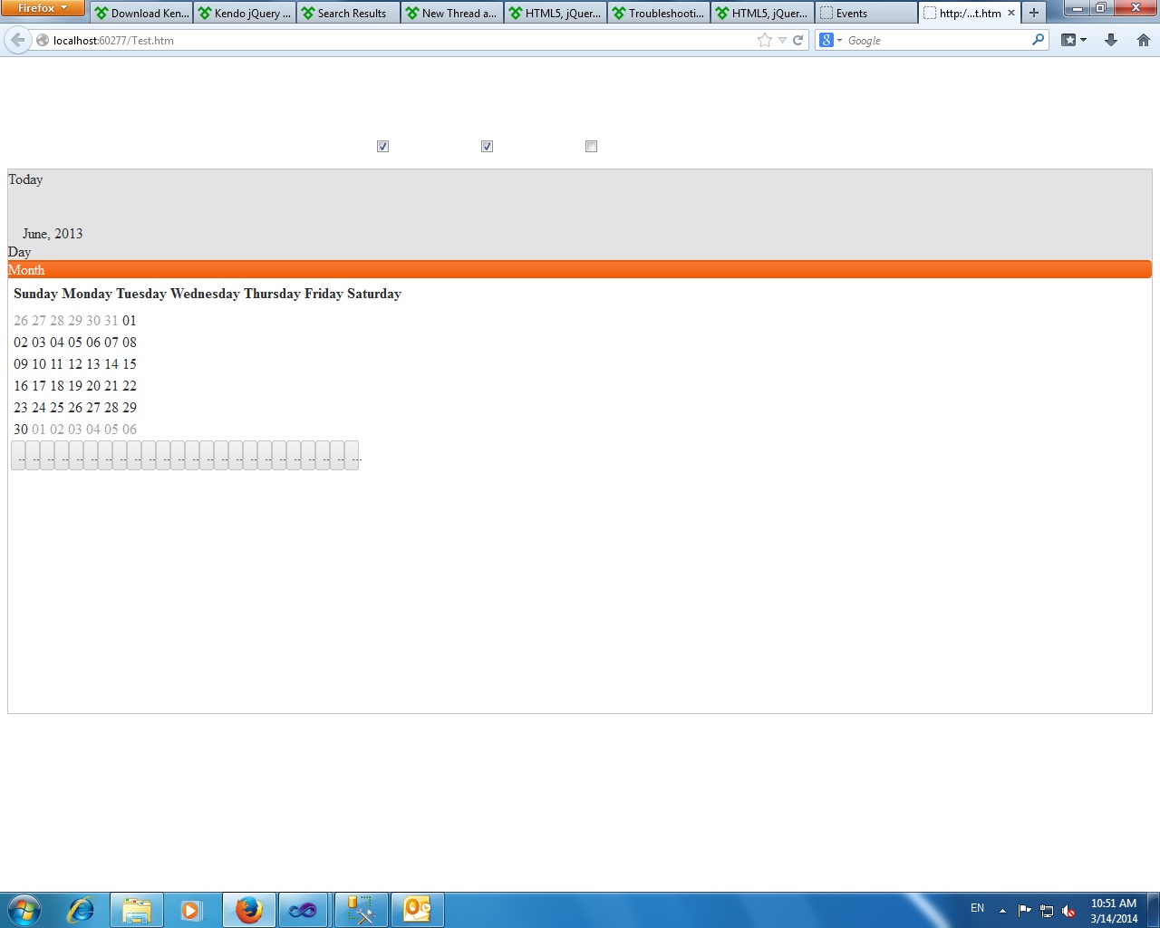 I am using a scheduler in htm file in asp .net (non MVC) application. When I run the file in any browser the styles are not applied properly. Below I have provided the entire code. Please take a look what is wrong in the code.