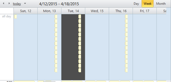 If there are only a few appointments, I managed to programmatically make their width 100%. But as seen in the image, this has no effect when there are many appointments in one day. It's like there's an issue in the computation of the appointment width or something. I noticed in this example all the appointments have style of "width: 2.98578px; margin-left: 63px;" for what that's worth.