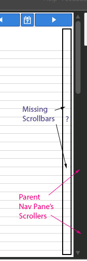 Putting some feelers out there... we are using a navigation pane in our software and call different pages into that view. One of them is RadScheduleView. We use a scrollviewer around the navigation pane to supply scrolling where the pages are too large for the resolution, but in the case of RadScheduleView, we want to envoke it's own scrollbars; but it seems display the entire day instead, using the parent ScrollViewer.