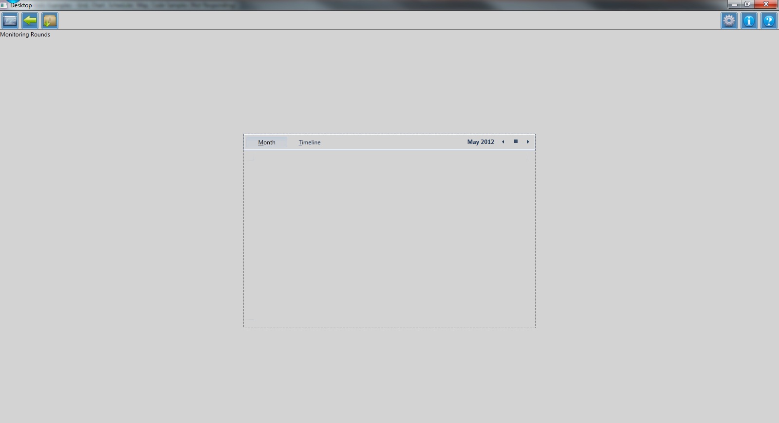 <UserControl x:Class="MonitoringRounds" xmlns:local="clr-namespace:EScIS.Win.Controls.MonitoringRounds" xmlns:telerik="http://schemas.telerik.com/2008/xaml/presentation" mc:Ignorable="d" d:DesignHeight="600" d:DesignWidth="1000" > <UserControl.DataContext> <local:MonitoringRoundsViewModel/> </UserControl.DataContext> <Grid> <Grid.RowDefinitions> <RowDefinition Height="0.05*" /> <RowDefinition /> </Grid.RowDefinitions> <TextBlock Grid.Row="0">Monitoring Rounds</TextBlock> <telerik:RadScheduleView Grid.Row="1" Name="radsvMonitoringRounds" Padding="5" MaxHeight="400" MaxWidth="600" AppointmentsSource="{Binding Appointments}" ResourceTypesSource="{Binding ResourcesTypes}"> <telerik:RadScheduleView.ViewDefinitions> <telerik:MonthViewDefinition /> <telerik:TimelineViewDefinition /> </telerik:RadScheduleView.ViewDefinitions> </telerik:RadScheduleView> </Grid></UserControl>My Window: