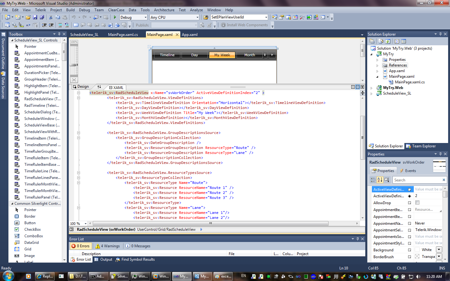 The Project has nothing except one control ScheduleView within UserControl of MainPage.