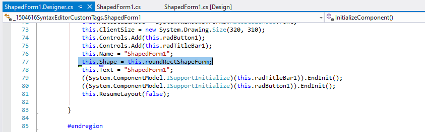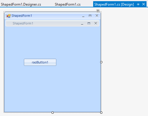 I have tried to convert that form that is ShapedForm to RadForm but the form has failed (many errors in the MyForm.designer.cs), and for that reason I have lost what I was doing since I have to undo my changes (I had included the TableLayoutPanel).