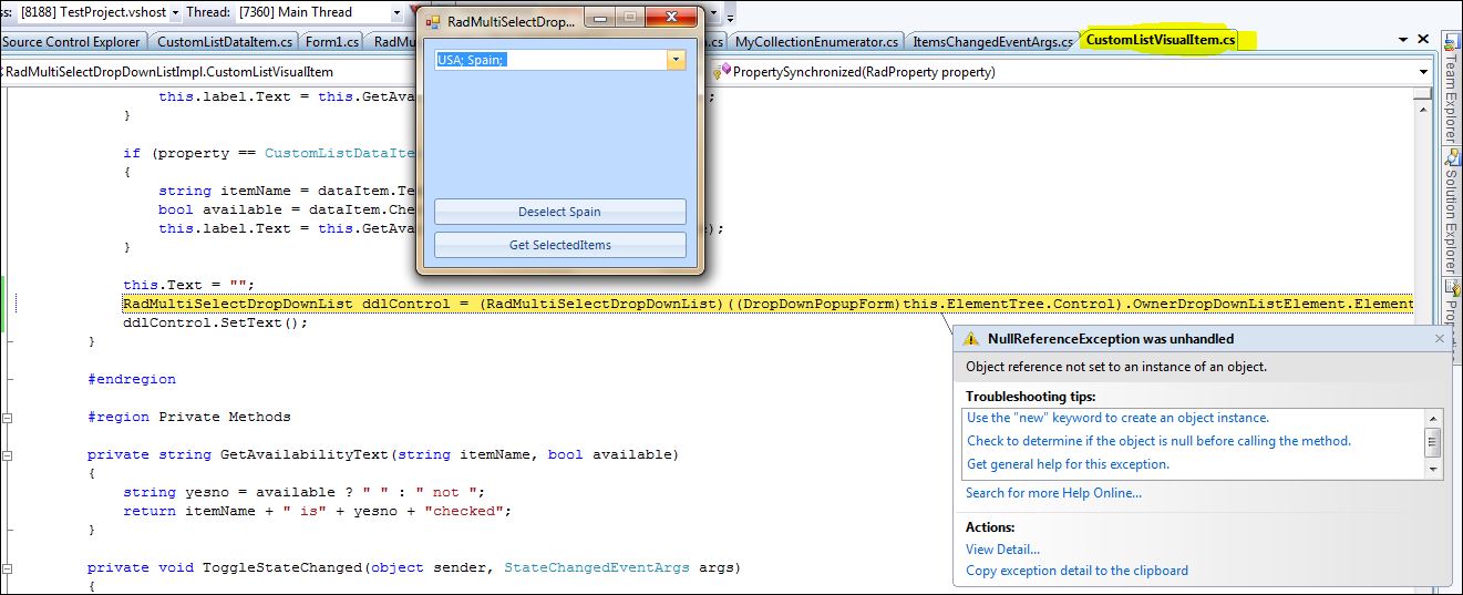 I would kindly ask you to open a separate thread with the appropriate Product (e.g. RadDropDownList for WinForms) and to avoid mixing different subjects in the same thread in future. This will also give you the opportunity to track the different cases easily in your account. Thank you for your understanding.