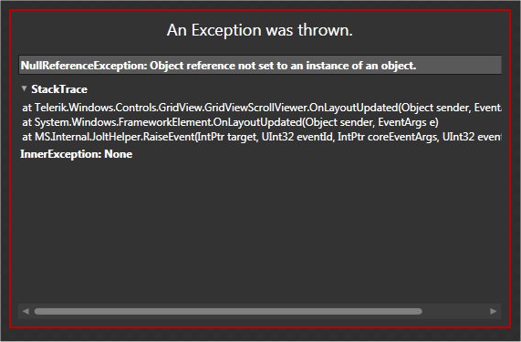and when I drop a GridViewScrollViewer on the board and edit the template, it crashes with a NullReferenceException (Object reference not set to an instance of an object)