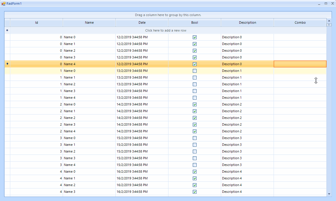 This forum thread is about the Telerik UI for WinForms RadGridView control. As you are using the WPF grid control, please post your question here: https://www.telerik.com/forums/wpf.