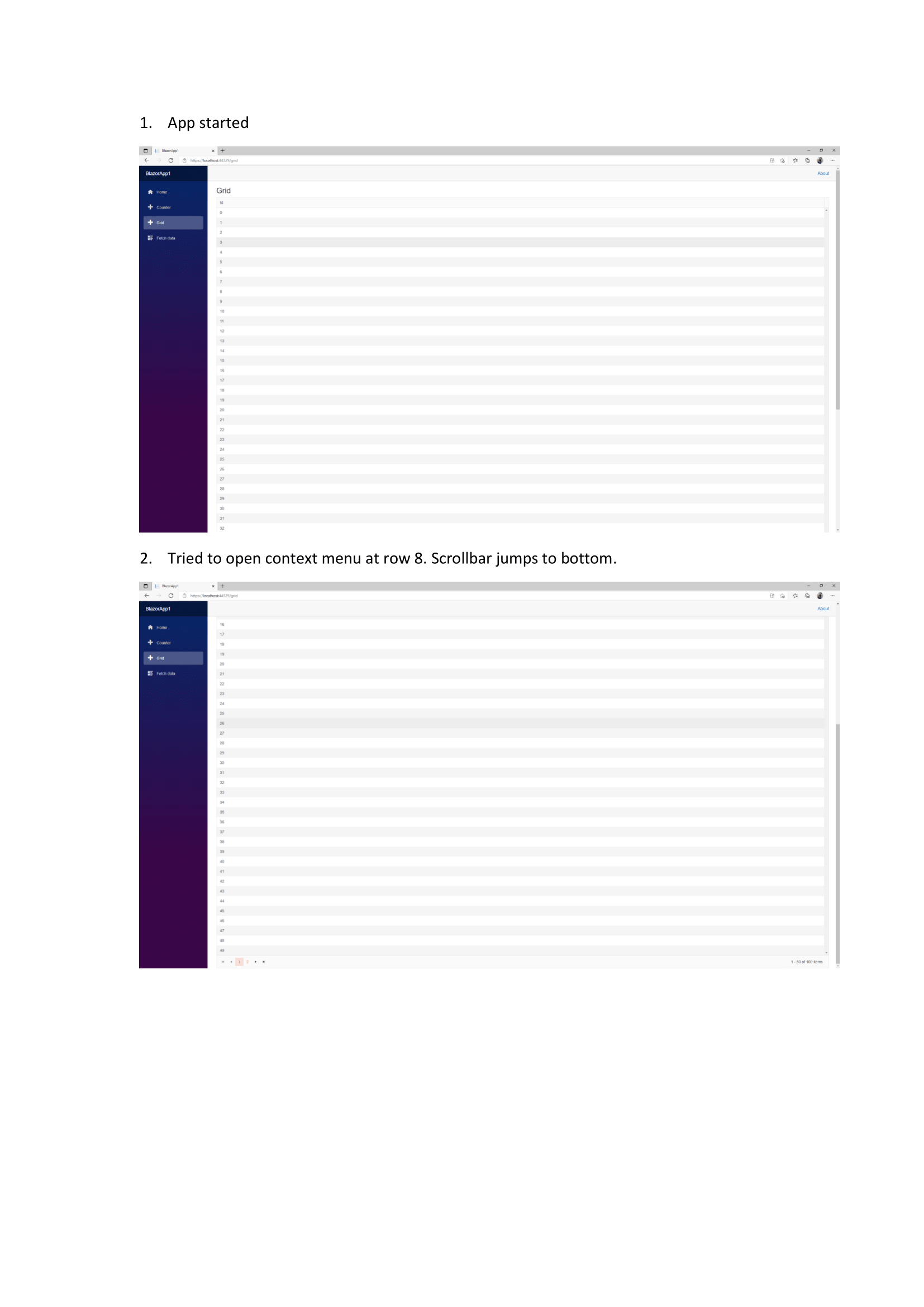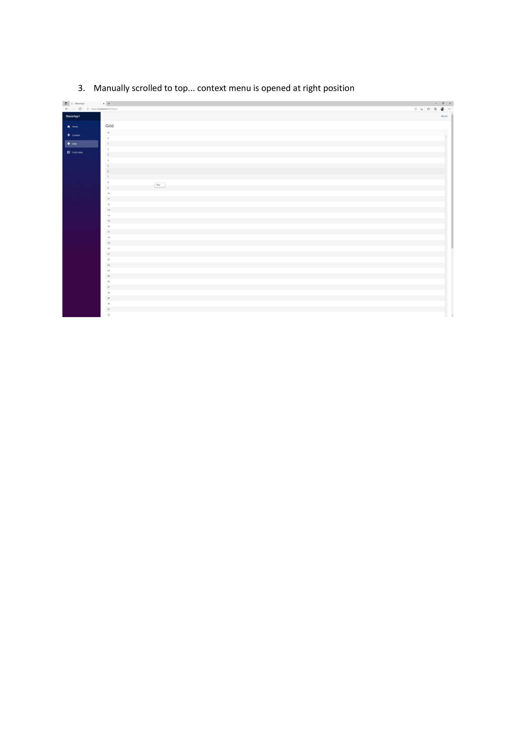 When there are so many rows that the browser has a scroll bar, the context menu that opens automatically moves the scroll bar to the lowest position.