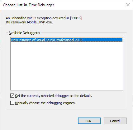 Thank you but I had already done that, not only for the “Common Language Runtime Exceptions”, but also for all other exception types too, and nothing new was revealed. I took a screenshot though, which might be helpful. If not, would you try set an appropriate time to connect to my system (e.g. via TeamViewer) to observe the problem in real-time please?