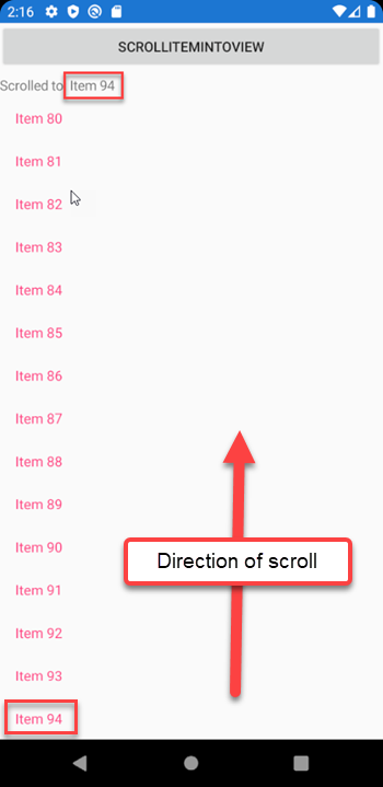 - If the item is beneath the view port, then the RadListView will stop scrolling once the item appears at the bottom of the viewport.
