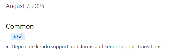 I think this a bug in the kendo framework: https://github.com/telerik/kendo-ui-core/blob/817e1380d55fb3454b7d38141df7103d4e3a1586/src/kendo.core.js#L2203C39-L2222It looks like they assume support for MozTransform in CSSStyleDeclaration means support for -moz-transform in CSS. It's not clear why the library doesn't support unprefixed transform.