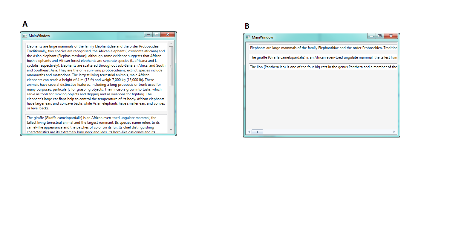 If I remove the 3 setters from the style, then the example does what I want it to (see jpg-file example A, textbox uses wrap), but when the 3 setters are in the style it kind of destroys the way it is supposed to work (see jpg-file example B, textbox does not use wrap).