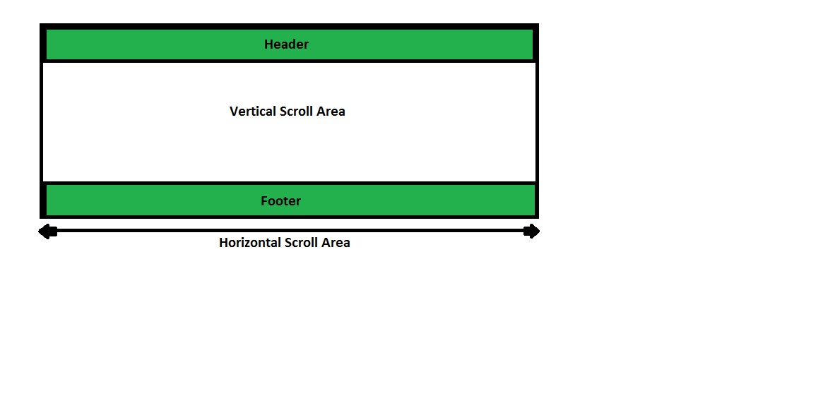 I've tried deviding the UI in 3 parts like header footer and scrollabe area but in that case the vertical scrollbar gets scrolled by the horizontal scrollbar if the width of the window is less than minWidth.