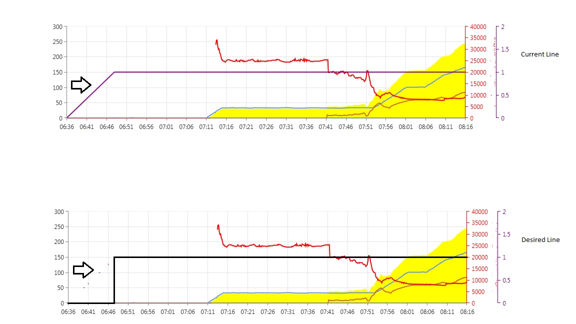 var outputsuperImposedLineSeries = new LineSeries(); outputsuperImposedLineSeries.ValueBinding = new PropertyNameDataPointBinding("Value"); outputsuperImposedLineSeries.CategoryBinding = new PropertyNameDataPointBinding("Timestamp"); outputsuperImposedLineSeries.ItemsSource = superImposedMappings.Groups.First() as IEnumerable; outputsuperImposedLineSeries.Stroke = Brushes.Purple; outputsuperImposedLineSeries.TrackBallInfoTemplate = BuildTrackBallInfoTemplate(Brushes.Purple.ToString(), name, 4); outputsuperImposedLineSeries.VerticalAxis = new LinearAxis { Minimum = 0, ElementBrush = Brushes.Purple, Title = name, HorizontalLocation = Telerik.Charting.AxisHorizontalLocation.Right }; superImposedSeries.Add(outputsuperImposedLineSeries);Is this desired effect possible?